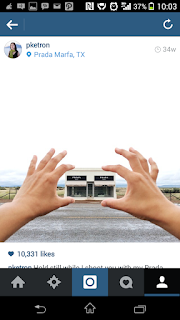 Selain kaki, kita juga bisa bereksperimen dengan tipuan visual, saya menyebut begitu karena foto milik Pei Ketron yang beralamat @Pketron. Ia memotret tangan yang seolah-olah memegang bangunan yang ada di depannya. Bangunan itu sebetulnya besar, tapi karena dipotret dari jauh sehingga kelihatan kecil. Foto seperti ini saya kira sangat populer di kalangan traveller ya, misalnya orang yang seolah-olah memegang monas.