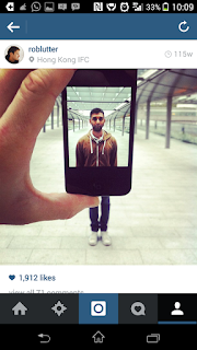 Foto kreatif berikutnya dari Rob Lutter, ia memotret figur orang dari sebuah hand phone, tapi hanya bagian kepala dan badannya saja. Sementara kakinya ia biarkan tak masuk ke hand phone, sehingga objek dalam foto terlihat aneh dan unik.