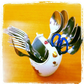 sebetulnya, objek ini adalah tempat menyimpan sendok dan garpu, tapi karena bentuknya yang menarik, gatal rasanya tangan saya kalau objek secantik ini tidak saya foto.